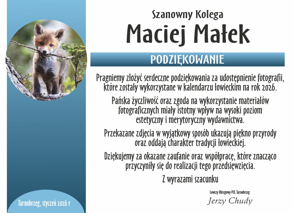 w imieniu Zarządu oraz Redakcji kalendarza na rok 2026 wydanego przez PZŁ w Tarnobrzegu pragniemy złożyć Panu szczere i oficjalne przeprosiny za brak podpisów pod zdjęciami Pana autorstwa, które zostały opublikowane w przedmiotowym wydawnictwie.